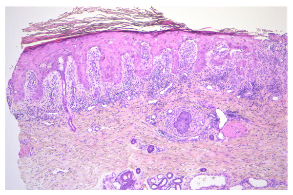 Doente do sexo feminino de 62 anos com doença renal crónica, foi referenciada por úlceras cutâneas dolorosas no lábio inferior, coxa,...