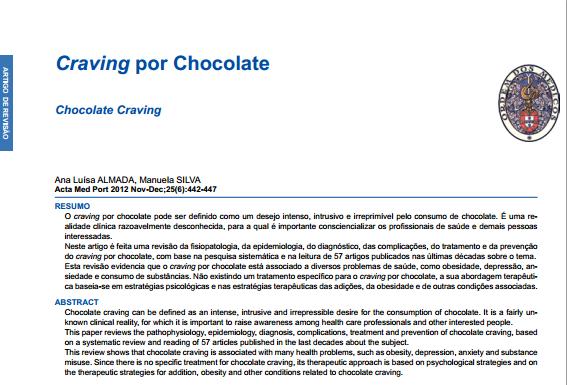 “Chocolate craving can be defined as an intense, intrusive and irrepressible desire for the consumption of chocolate. It is a fairly unknown cli...