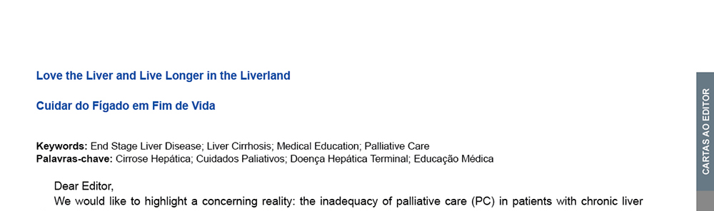 We would like to highlight a concerning reality: the inadequacy of palliative care (PC) in patients with chronic liver disease (CLD). It is our opinion that these pati...