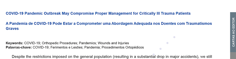 Despite the restrictions imposed on the general population (resulting in a substantial drop in major accidents), we still need to provide appropriate care for high-ene...