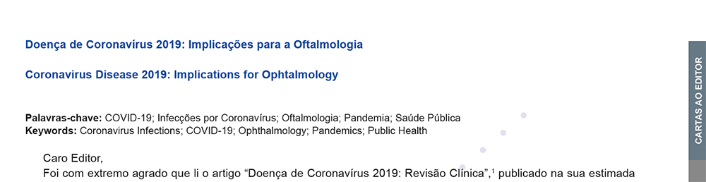 Foi com extremo agrado que li o artigo “Doença de Coronavírus 2019: Revisão Clínica”,1 publicado na sua estimada revista. Trata...