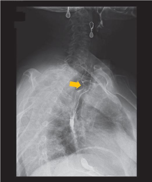A 71-year-old female presented with a two-year history of intermittent dysphagia for solids and a 6 kg weight loss.