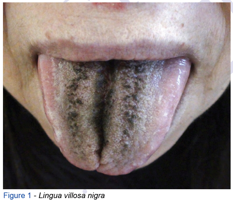 A 66-year old female patient presented to her family physician an asymptomatic black discoloration of the tongue she noted that day. There was no other sign associated...