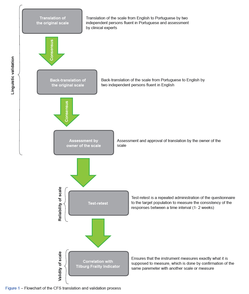 Material e Métodos: Este estudo de validação incluiu idosos internados em duas unidades de convalescença da Rede Nacional de Cuidados Continuados Integrados no Norte de Portugal e seguidos em consulta de ambulatório de Instituições de solidariedade social. A validade convergente desta escala foi avaliada, comparando-a com o Tilburg Frailty Indicator. A fiabilidade teste-reteste, sensibilidade e especificidade foram testadas.