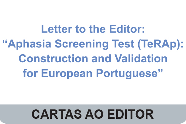 It was with particular interest that I read the article “Aphasia Screening Test (TeRAp): Construction and Validation for European Portuguese”.1 According t...